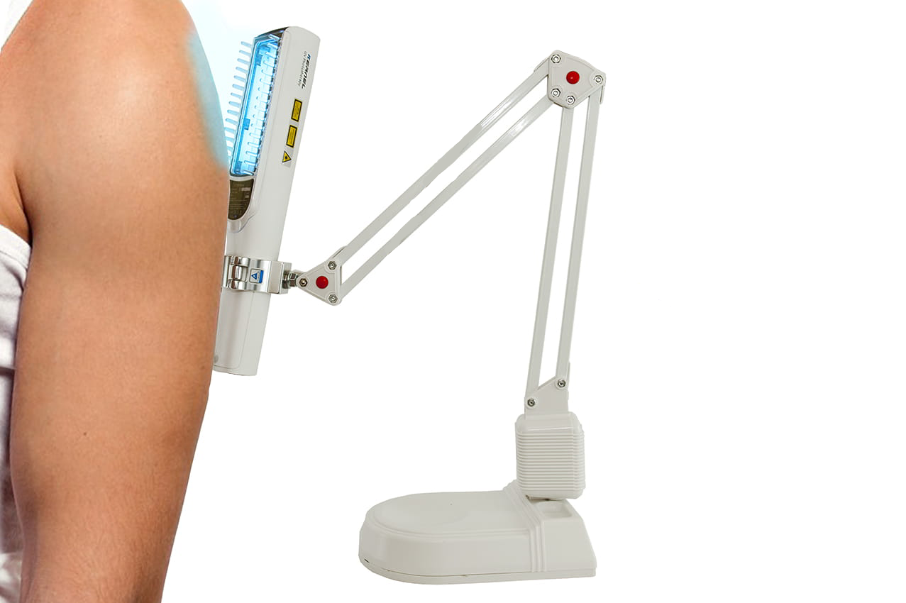 Przy terapiach takich chorób jak łuszczyca, atopowe zapalenie skóry, bielactwo czy łysienie plackowate zasadnicze znaczenie ma jakość aparatury leczniczej. Zawsze trzeba dobrać odpowiednią wielkość lampy do swoich indywidualnych zmian. Jeżeli masz problem z ustaleniem, która lampa będzie odpowiednia dla Ciebie możesz zadzwonić lub napisać do nas na pewno pomożemy w doborze. Przy stosowaniu właściwych dawek promieni oraz przy odpowiednim czasie trwania terapii można osiągnąć poprawę wyglądu skóry, aż do uwolnienia jej od zmian chorobowych. Terapia w domu odciąża znacząco pacjenta od koniecznych wizyt w gabinecie lekarskim.