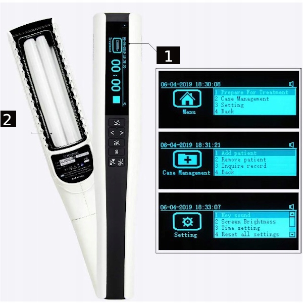 - Timer do ustawienia czasu naświetlania. Po odliczeniu czasu naświetlania lampa dermatologiczna sama się wyłączy.