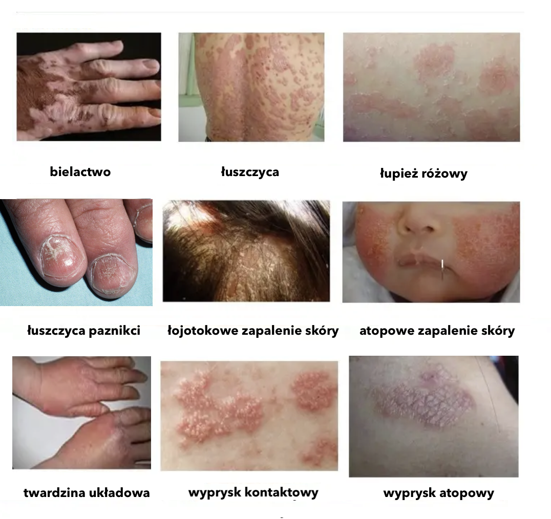 - Wielopostaciowe osutki świetlne (zapobiegawczo celem hartowania skóry),